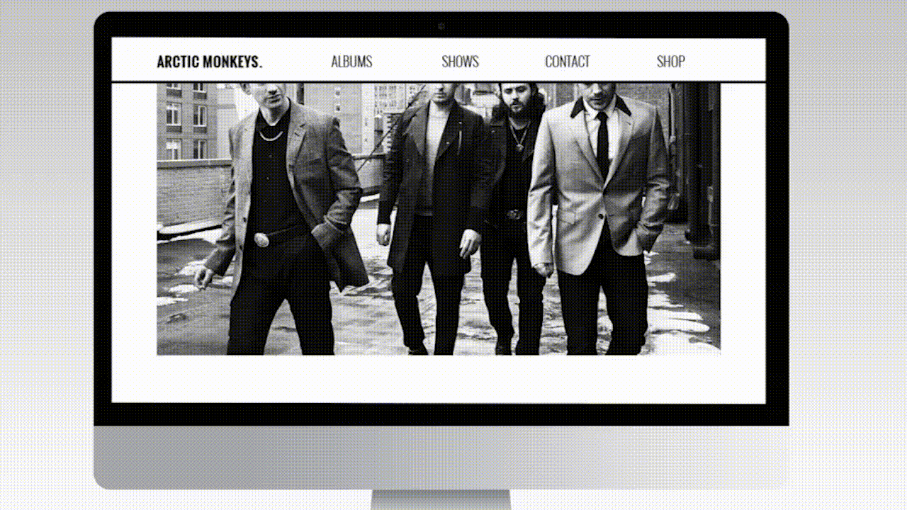 A responsive website concept for the Arctic Monkeys, featuring a band timeline, full discography, and integrated online store – all designed to reflect the band’s unique tone and aesthetic.