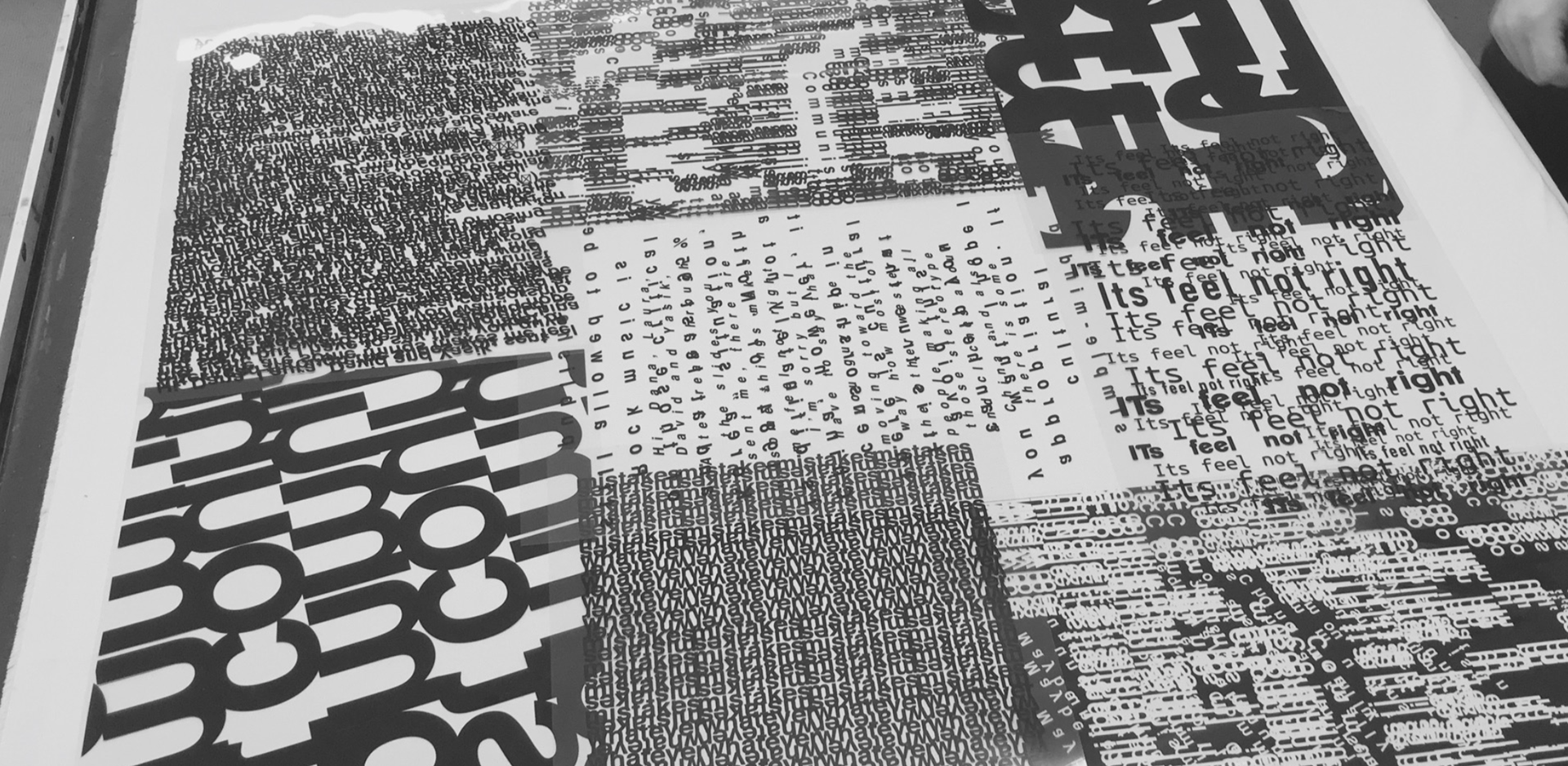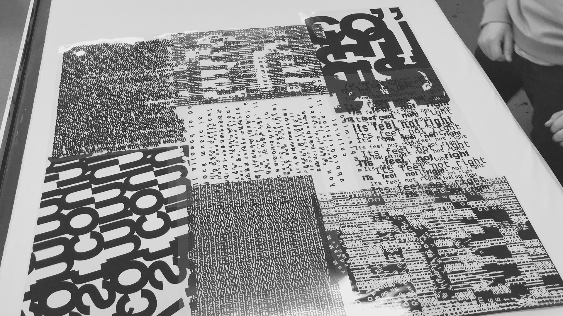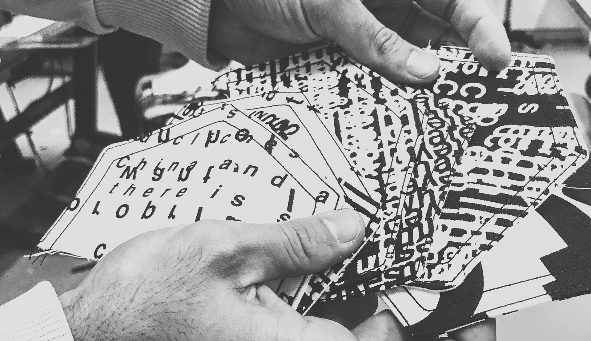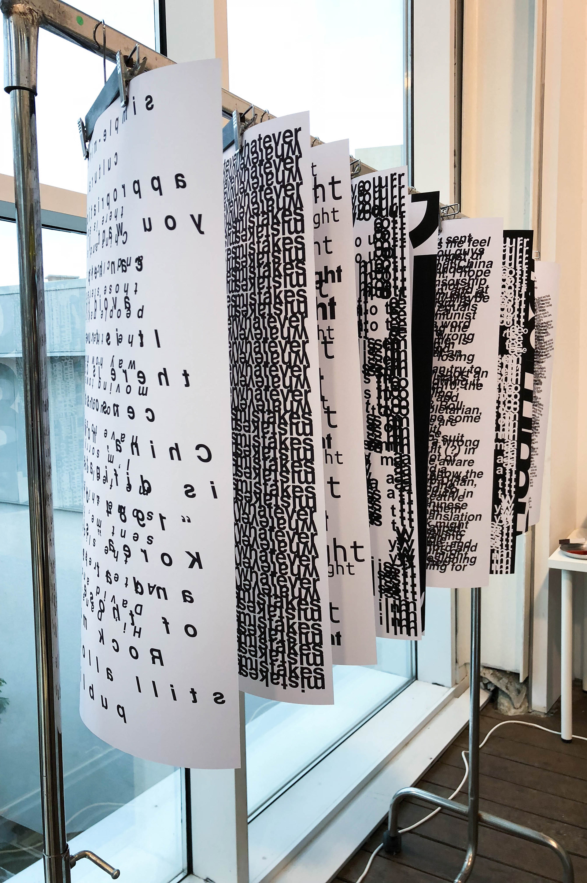 created as part of a collaborative educational program, the three ‘disruption jackets’ are inspired by the difficulties in communication between Chinese and Israeli students at shenkar college, Israel and yale university, the US. the black and white denim is covered with letters and words falling apart.