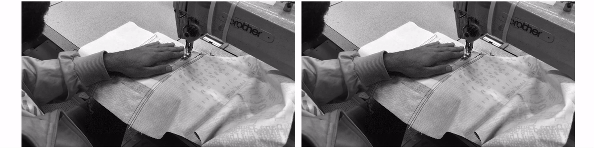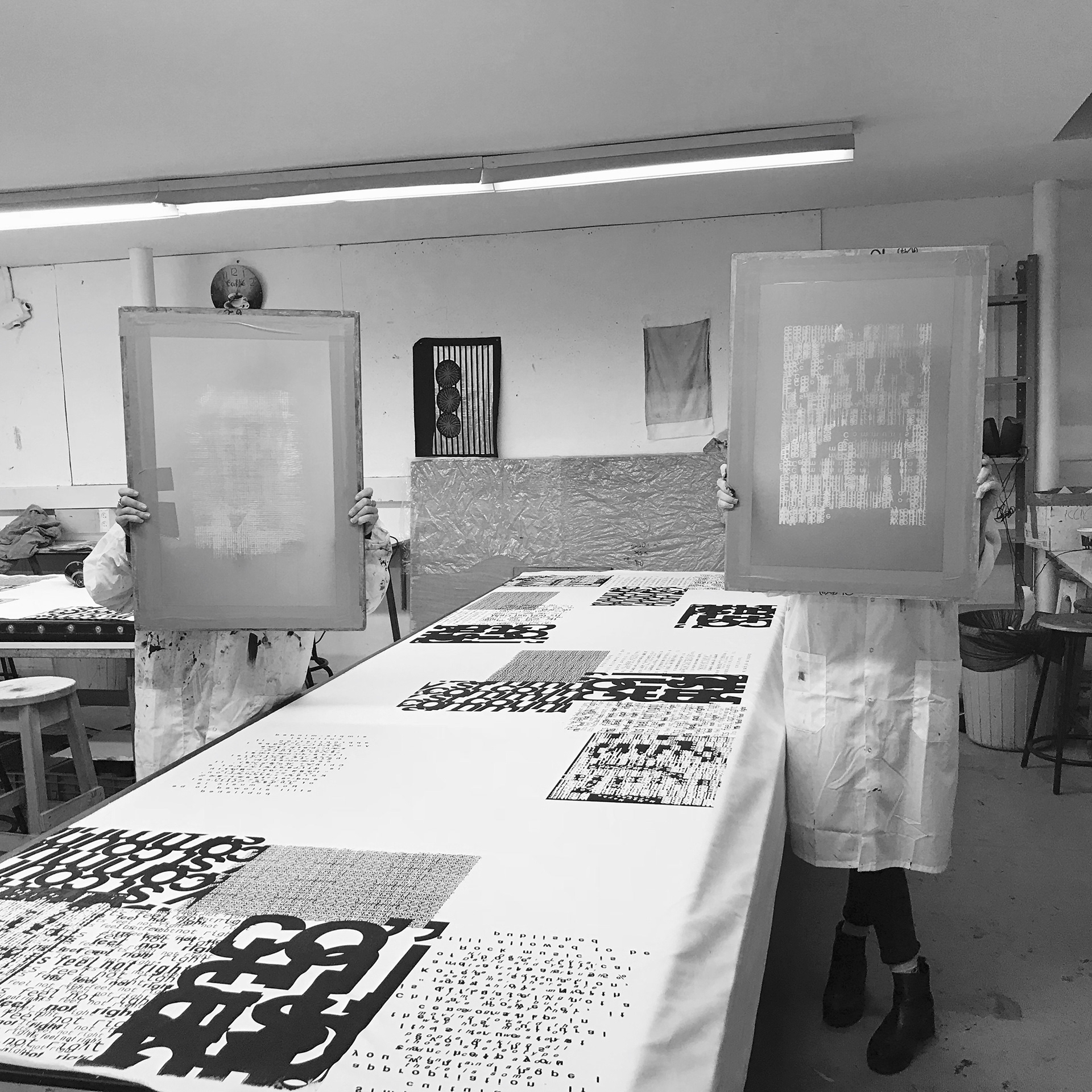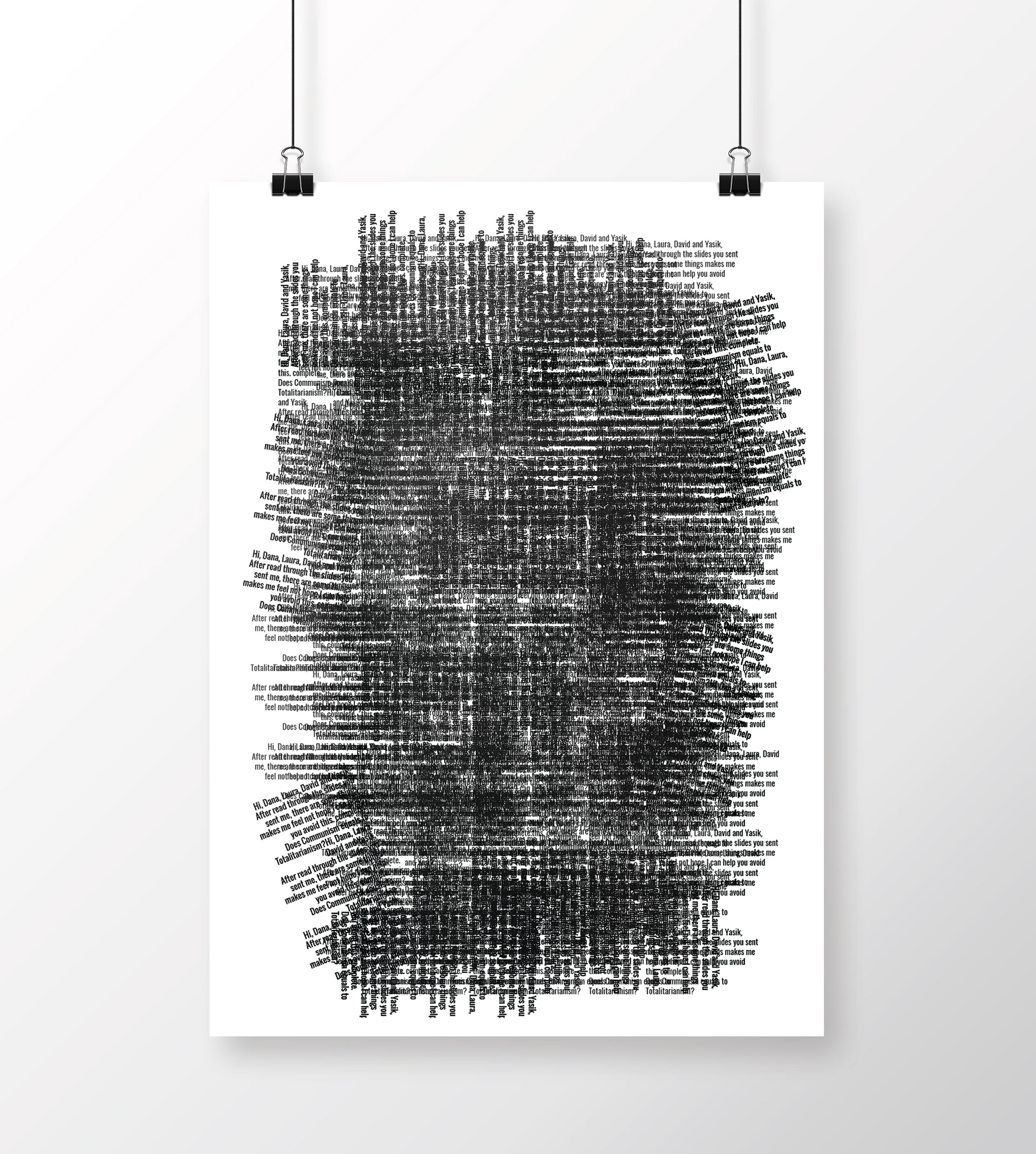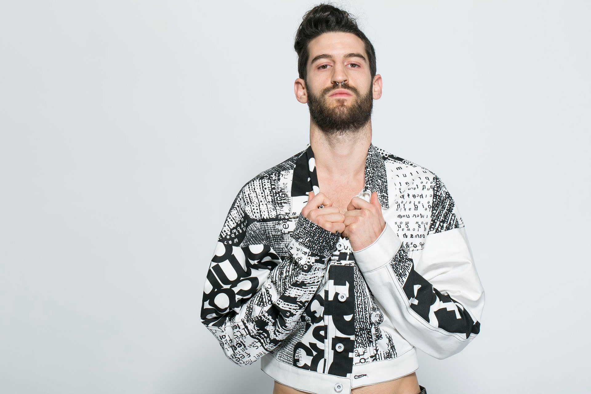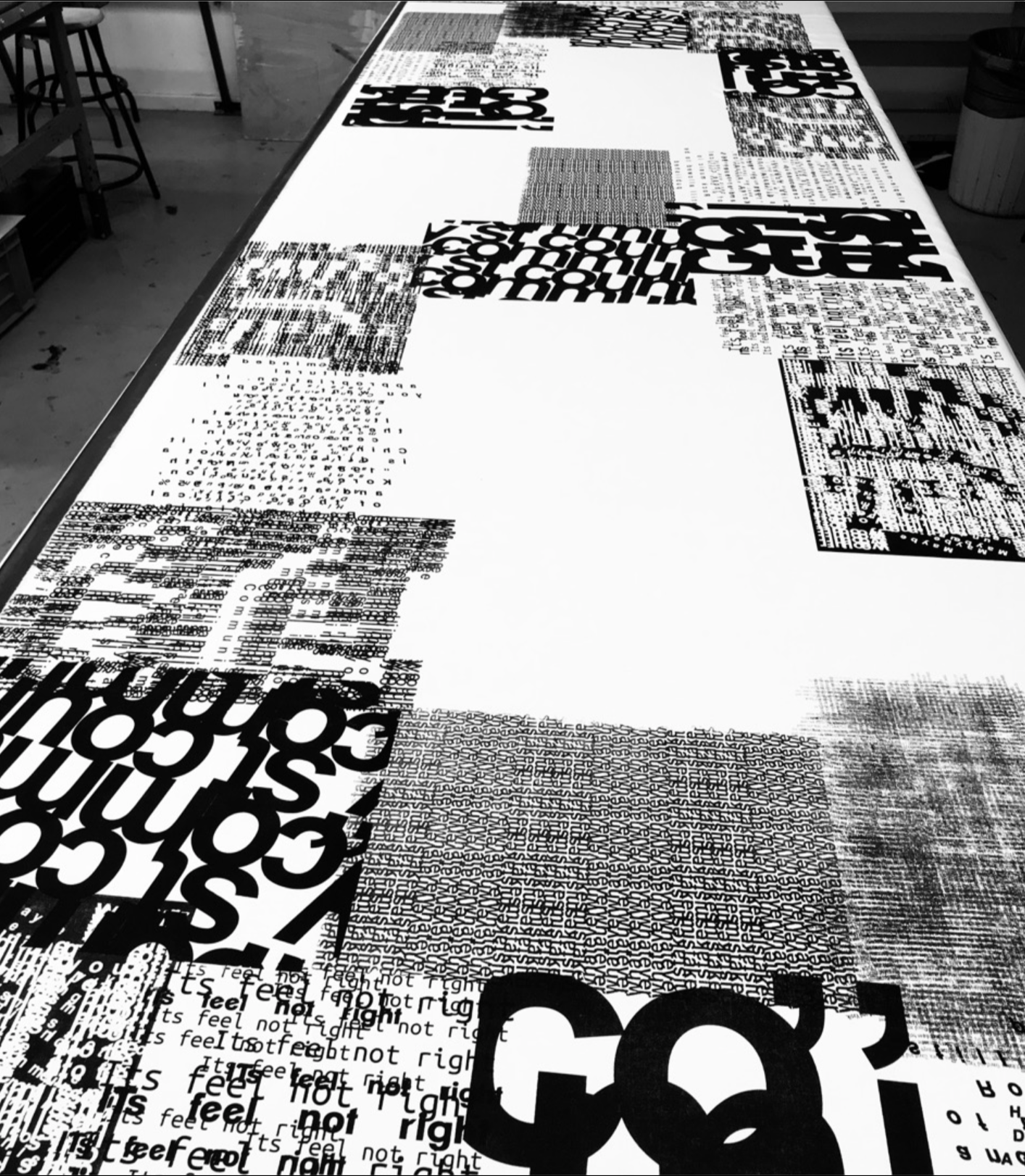created as part of a collaborative educational program, the three ‘disruption jackets’ are inspired by the difficulties in communication between Chinese and Israeli students at shenkar college, Israel and yale university, the US. the black and white denim is covered with letters and words falling apart.