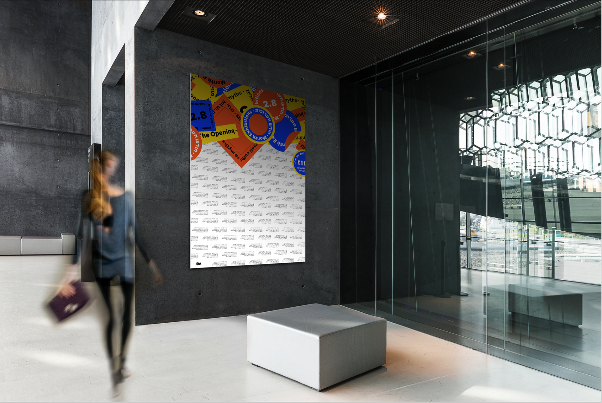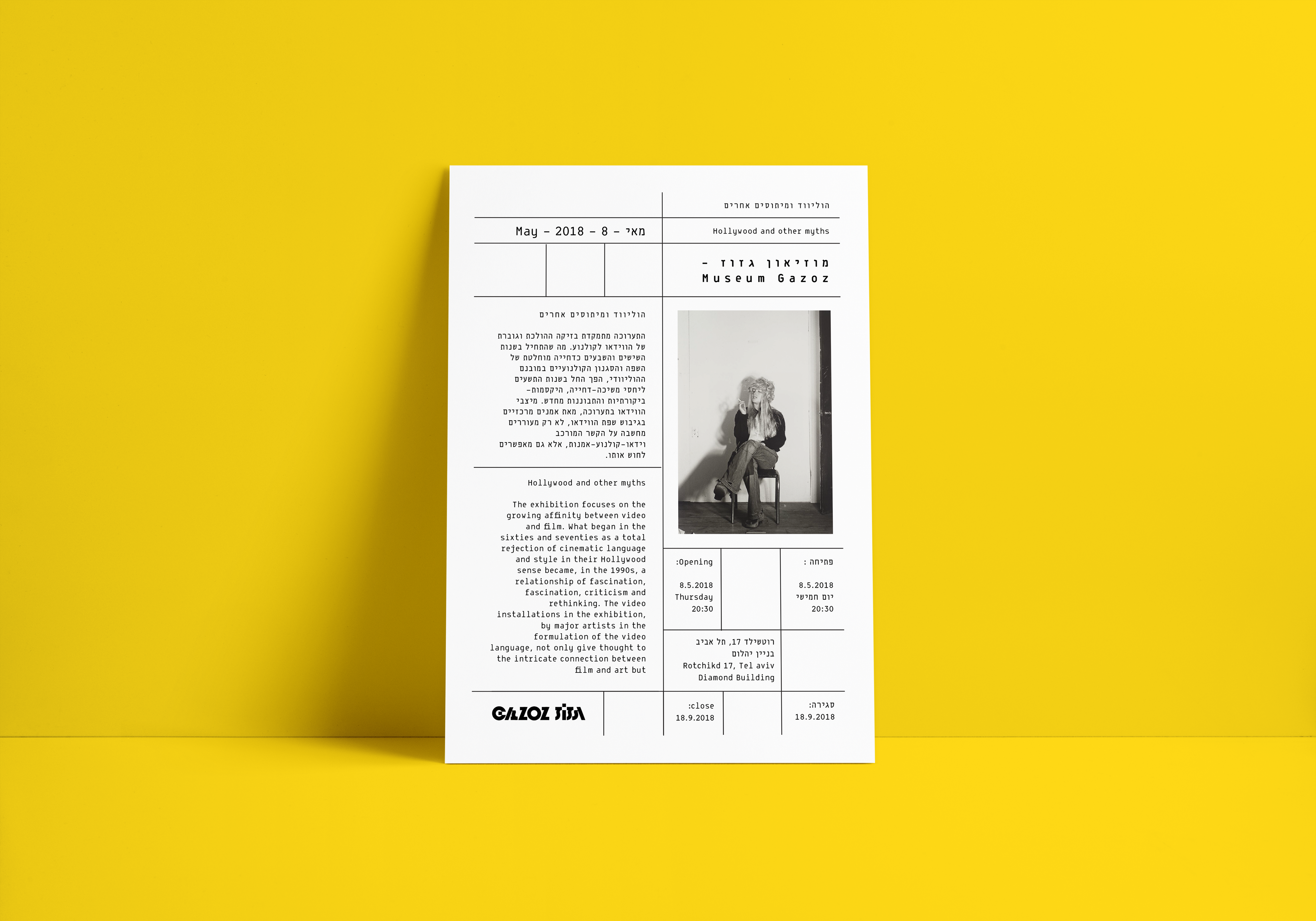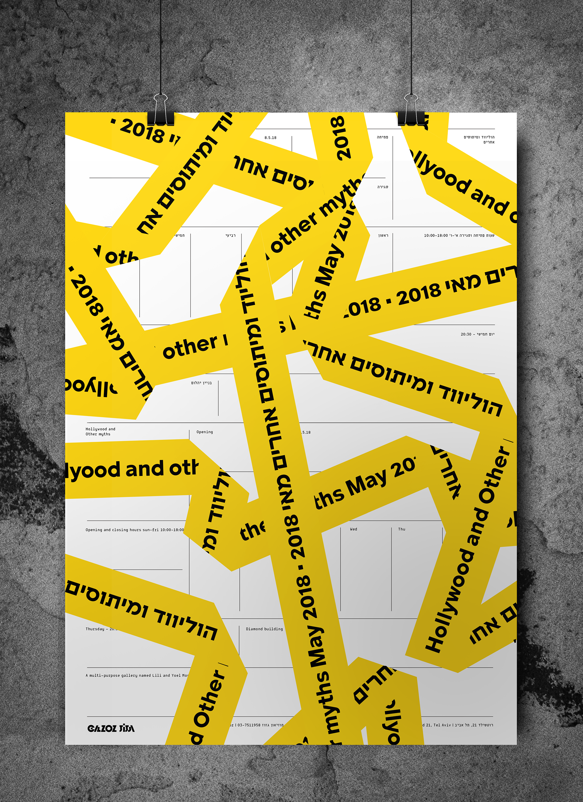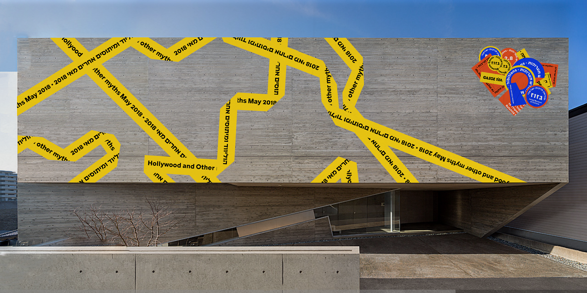 Branding of "Gazoz Museum of Israeli culture" The colors used are of the Mediterranean sands, sea, and sun. I was inspired by the amount of stickers that vary, represent and express, the multitude of cultural connections in Israel. My design is based on the informative, somewhat boring and mundane side of the Museum in contrast of the sassy, unpretentious Israeli side that's glued on layers and layers of different views and expressive ideas. I chose a naked cement wall that in my view symbolizes true and hard israeliness.