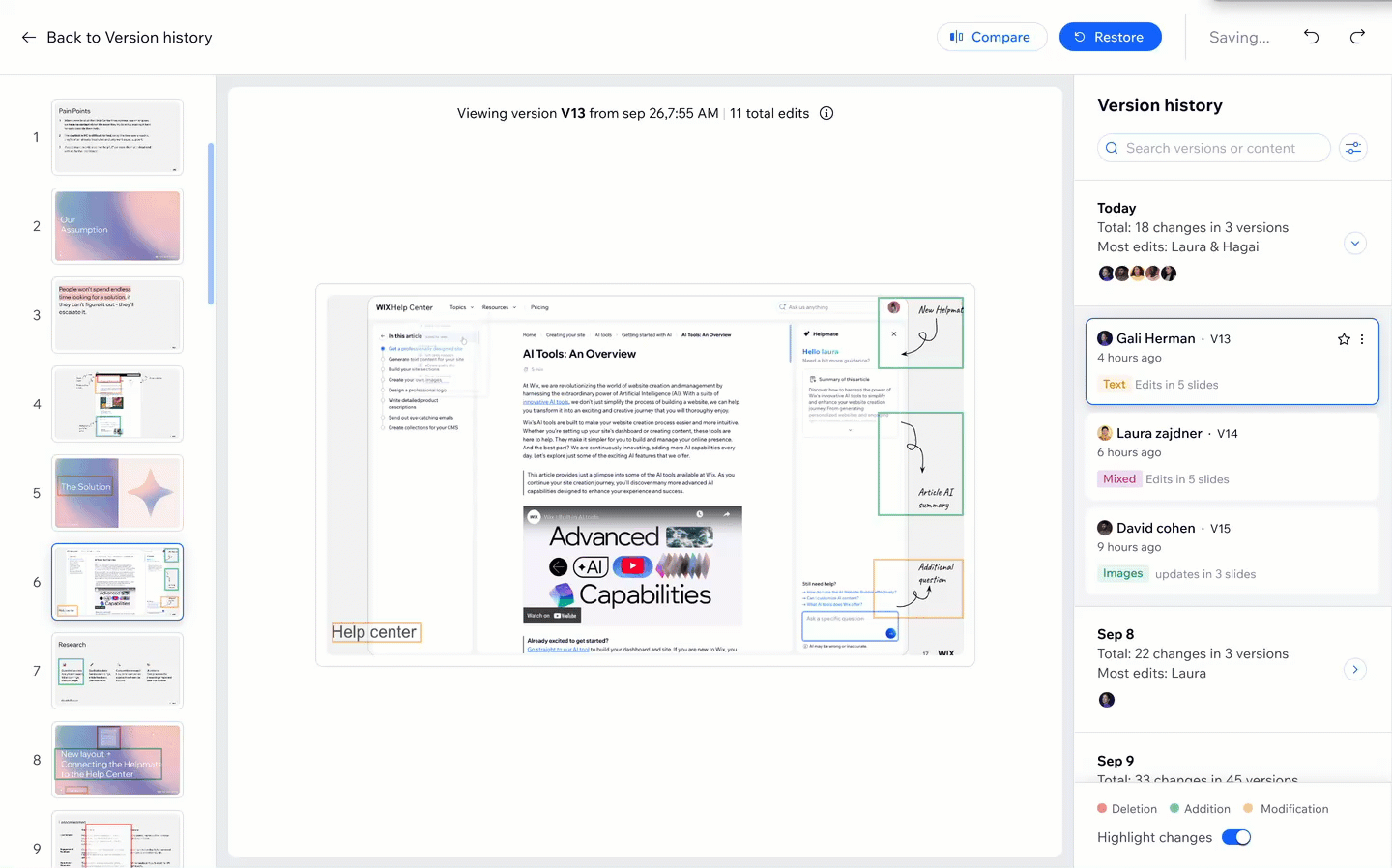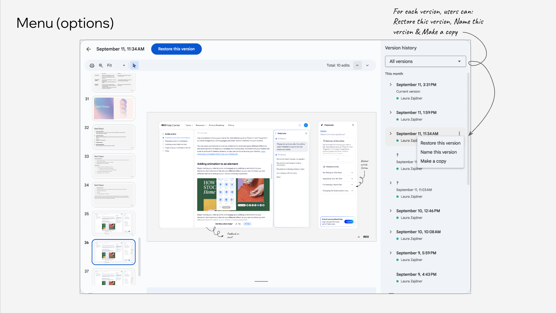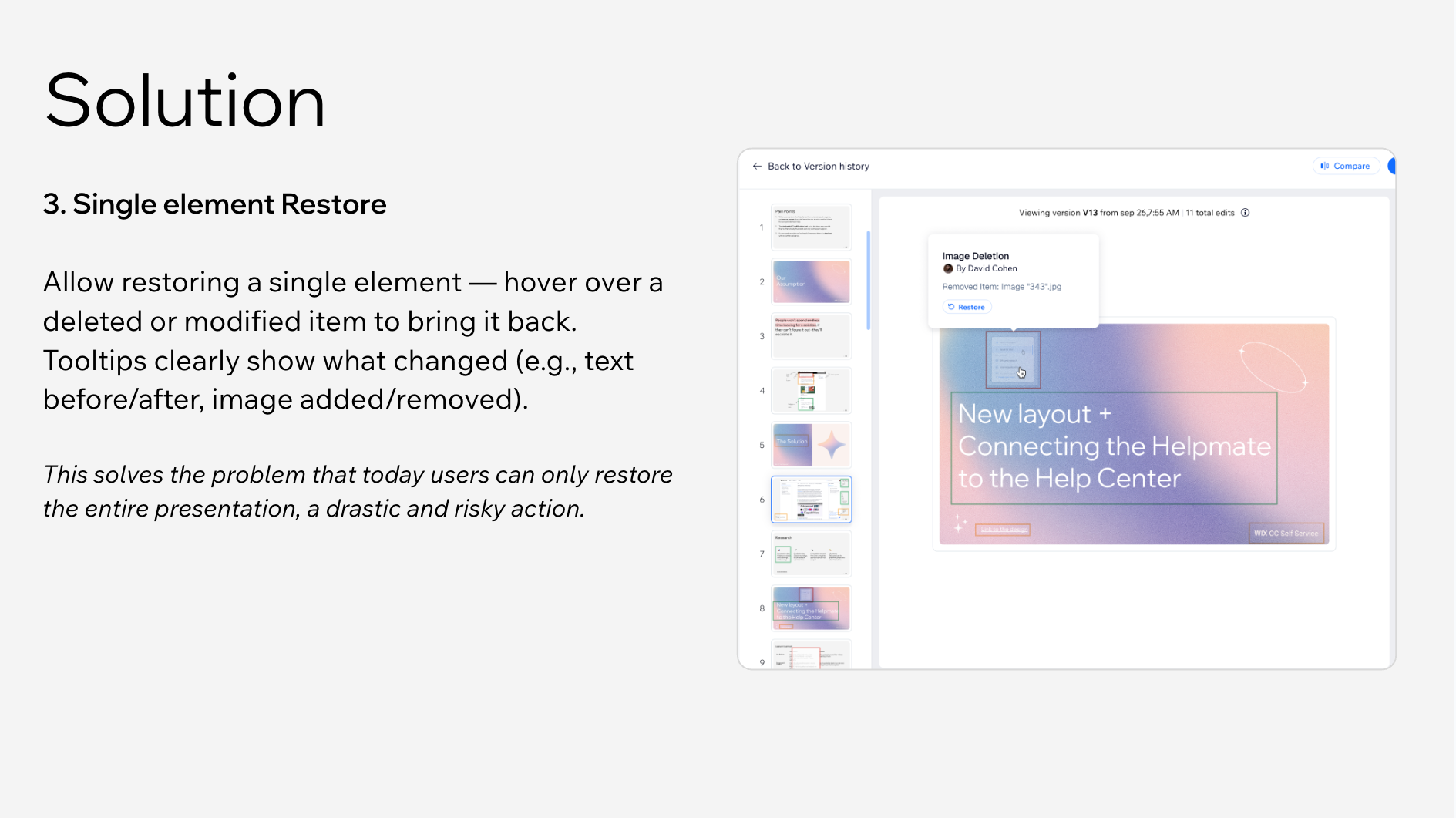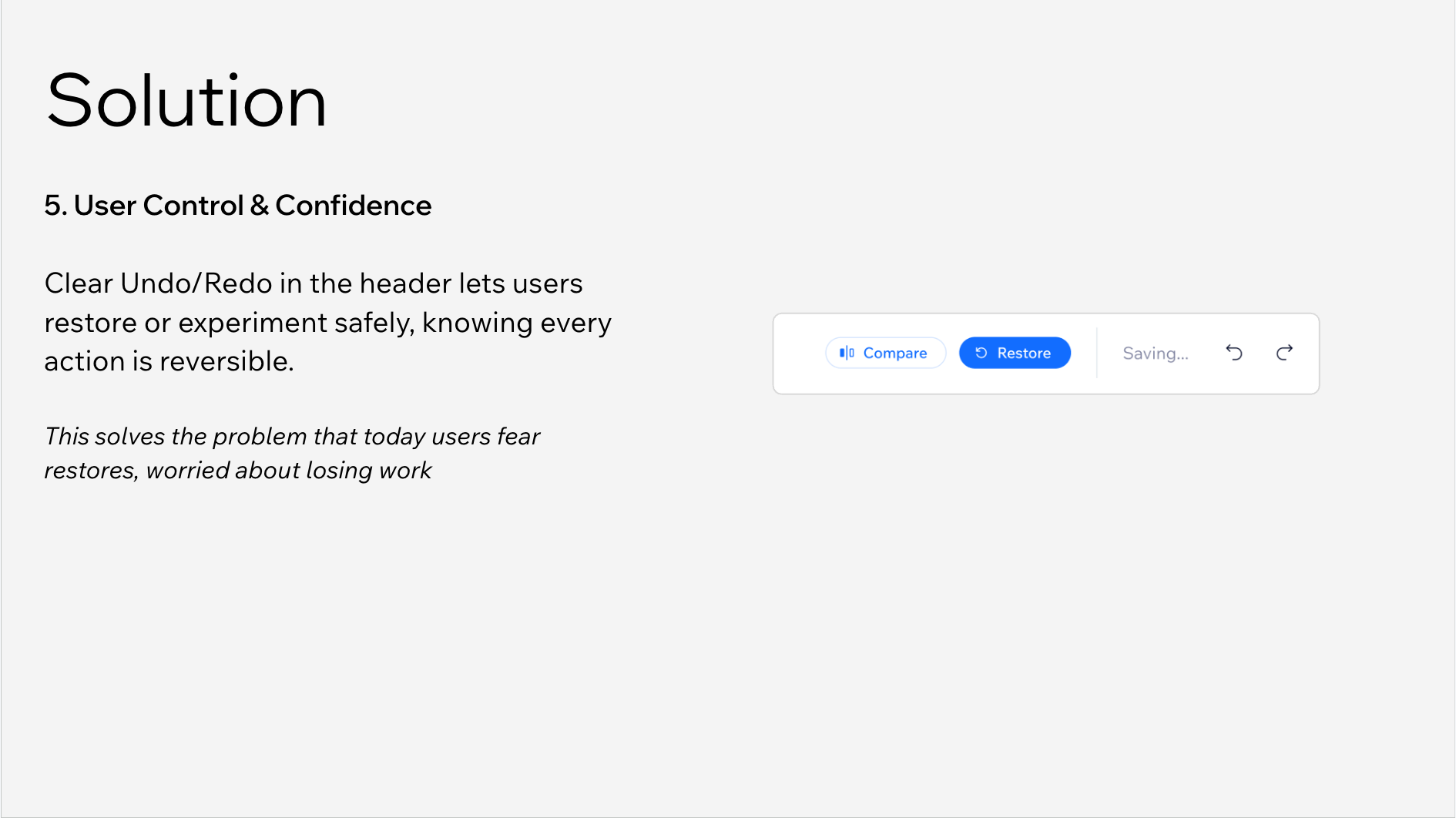 I redesigned Google’s version history experience to improve clarity, scannability, and decision-making in high-density workflows. The focus was on reducing cognitive load, strengthening visual hierarchy, and helping users understand changes and restore confidence faster.